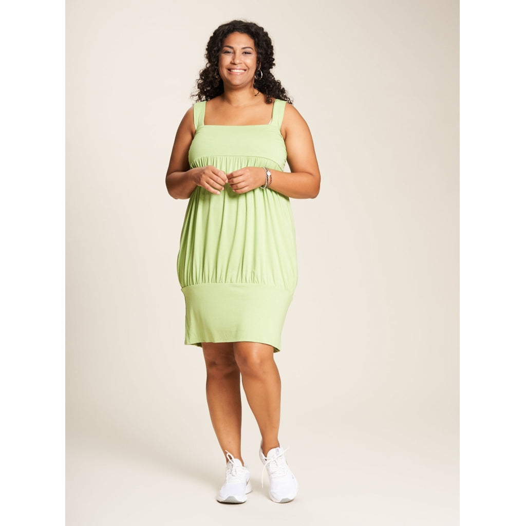 Casual dress in solid colour in high quality viscose jersey. Balloon fit with slightly figure fitted top and bottom. Wide straps.