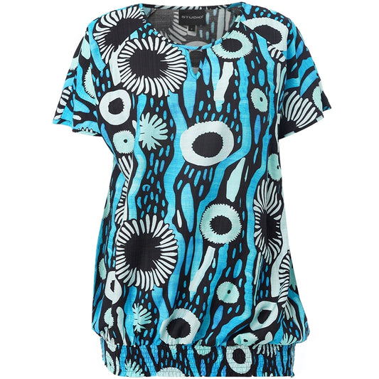 Bluse med en løs silhuet og en let overordnet udtryk. Designet har en løs form og et all-over grafisk print, der skaber et markant visuelt udseende.